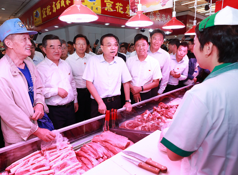 (李克強總理在哈爾濱菜市場詢問豬價 圖源中國政府網)