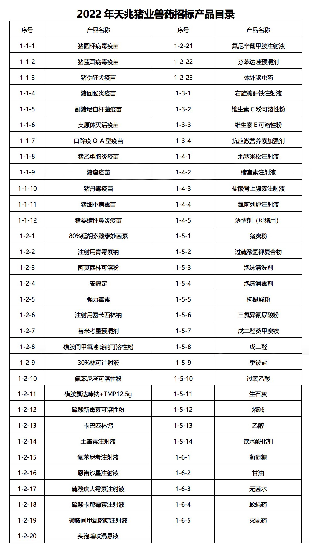 豬用疫苗、抗生素、消毒藥等豬場(chǎng)生產(chǎn)相關(guān)藥品。招標(biāo)產(chǎn)品參見(jiàn)附件《2022年天兆豬業(yè)獸藥招標(biāo)產(chǎn)品目錄》,但不僅限于附表。